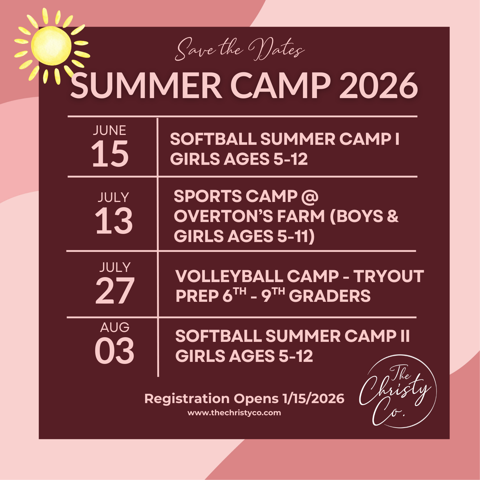 SUMMER CAMPS are just the best! Your athlete will enjoy the rural property while engaging in SPORTS. Each camp is designed to balance sports and fun. We dive DEEP into Softball and Volleyball. For Sports Camps, we strengthen fundamentals in softball/baseball, flag football, soccer, basketball, and more.